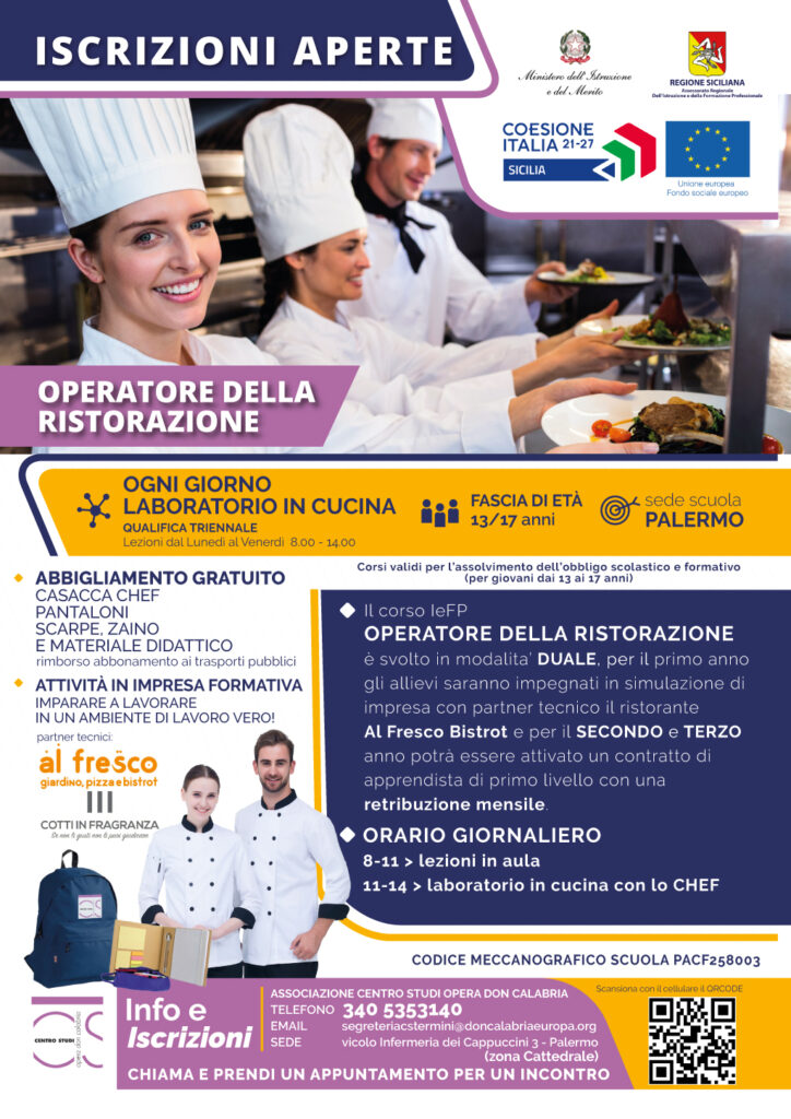 Il corso IeFP di OPERATORE DELLA RISTORAZIONE è svolto in modalità DUALE, per il primo anno gli allievi saranno impegnati in simulazione d’impresa con partner tecnico il ristorante AL FRESCO BISTROT e per il SECONDO e TERZO anno potrà essere attivato un contratto di apprendista di primo livello con retribuzione mensile.